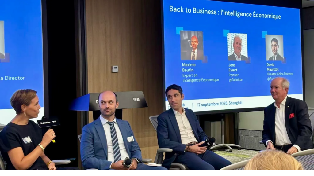 La table ronde, animée aux côtés de David Morizot (Asia Managing Director at Advention Business Partners) et Jens Evert (Partner – Asia Pacific Region at Deloitte) qui nous a mis à disposition les bureaux de Deloitte de Shanghai, a suscité de nombreuses questions, tant sur les pratiques opérationnelles de l’intelligence économique que sur la manière dont la France pourrait mieux valoriser ses communautés expatriées.