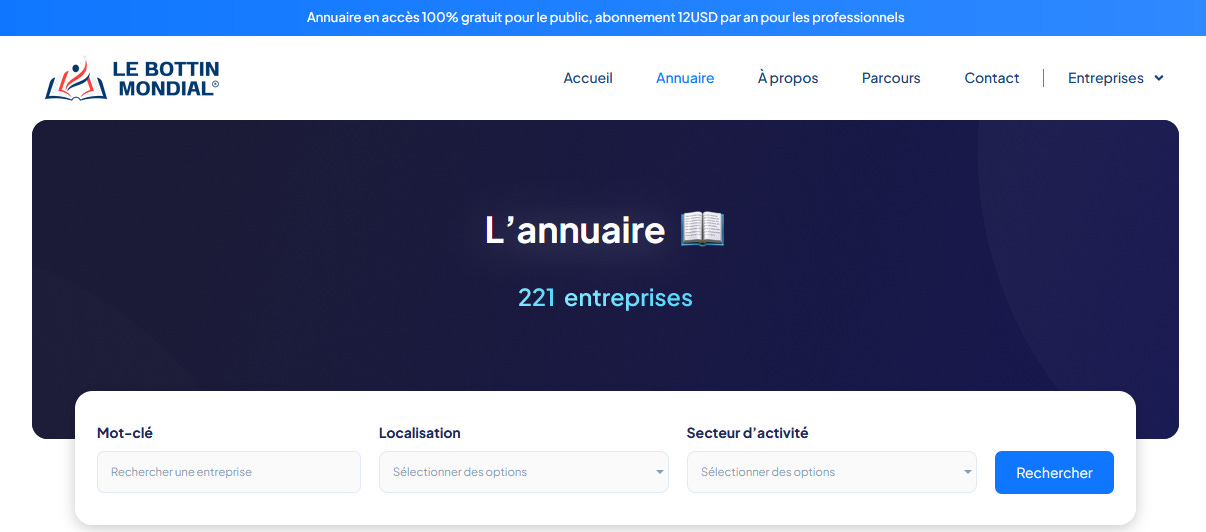 Screenshot du Bottin Mondial, 20 sept. 2025